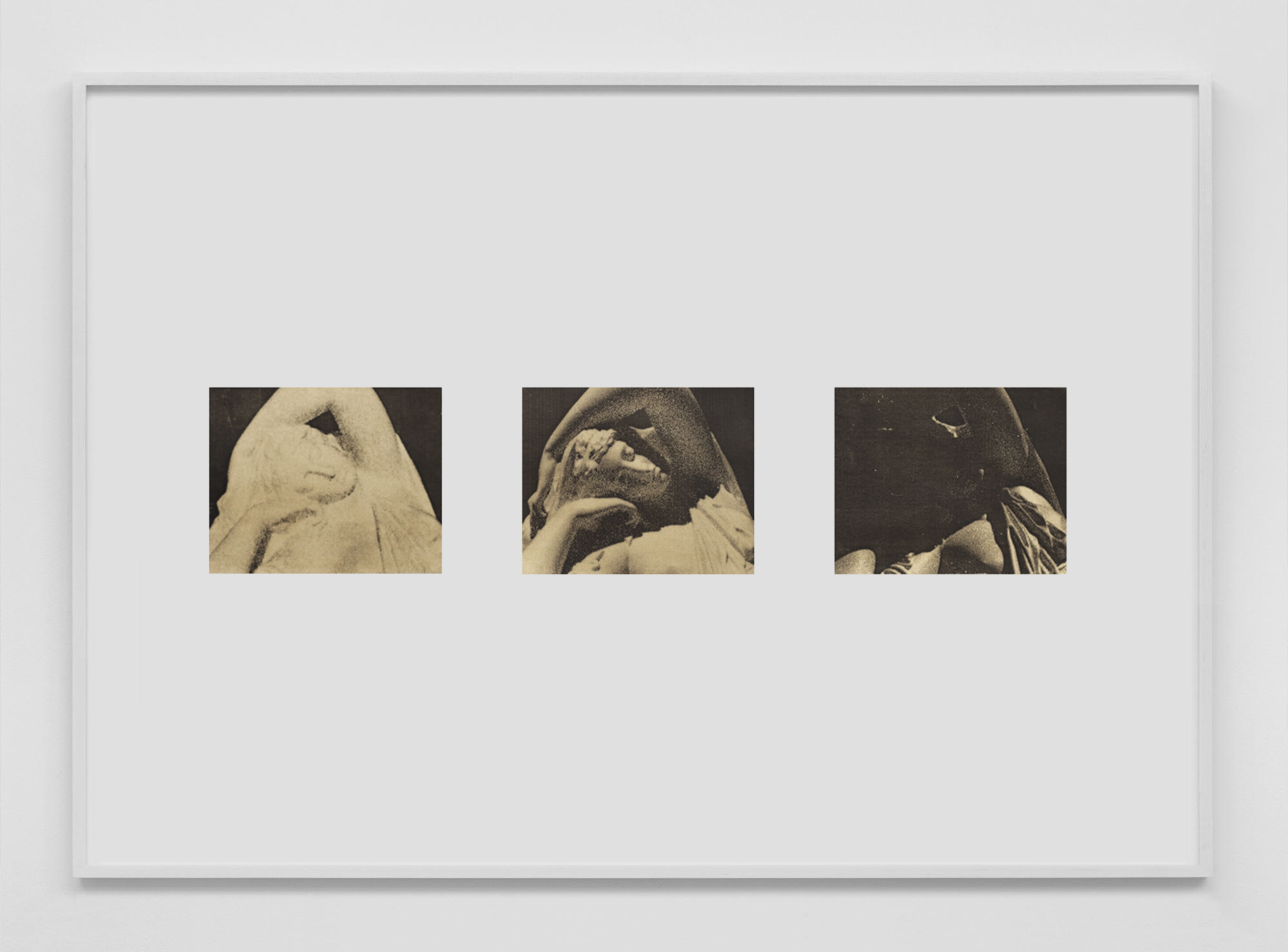 The geographical coordinates listed in the title of this work correspond to the city of Turin in northern Italy. The date refers to the day when the philosopher Friedrich Nietzsche, who was living in Turin at the time, saw a horse being whipped by his coachman, an event that is said to have precipitated his descent into madness. The coordinates and the date were used to simulate the sun’s passage over a 3D model of an antique statue of a sleeping Ariadne, a Greek mythological figure who, as the wife of Dionysus, plays a crucial role in Nietzsche’s thought. The work brings together three screen captures, corresponding to the hours of dawn, noon, and dusk.